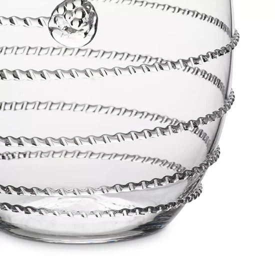 Mouth-blown by artisans in the hills of Prague, this stemless white wine glass is especially thin, making it an unexpected pleasure to drink from. Being handmade, no two pieces of Juliska are identical.