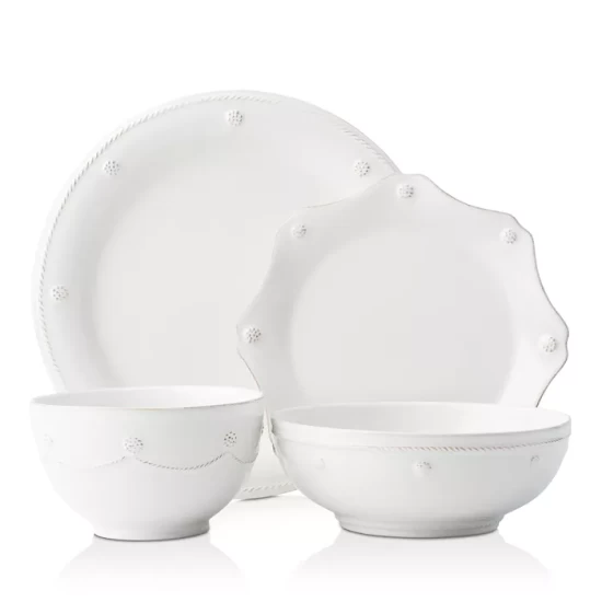- Set includes: 11″ dinner plate, 9″ salad plate, 26 oz., 6″W cereal bowl and 1 qt., 7.75″ coupe bowl