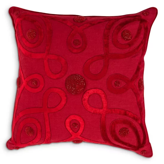 - Inspired by the parterre garden design of the Italian L’Andriana garden, this festive pillow is made of luxe linen, appliquéd with velvet, embellished with glass beads, and finished with hand-stitched French knot detailing