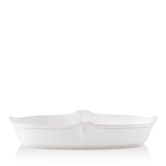 - Features high sides and subtle scallop detail