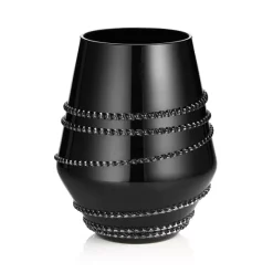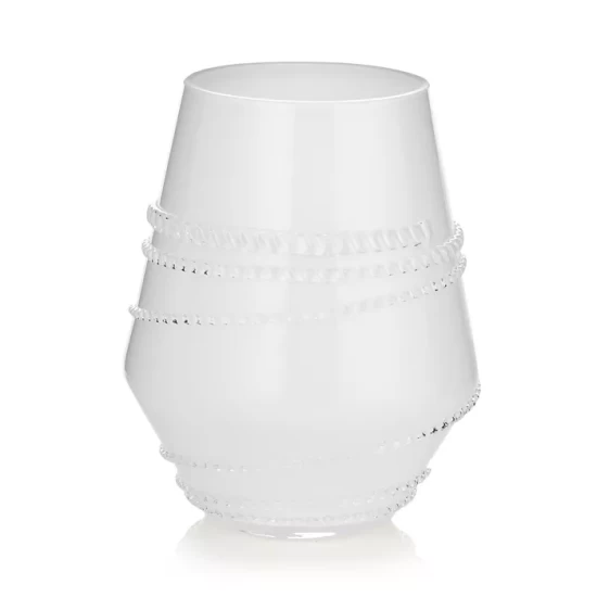 Inspired by the the glossy black columns and gleaming black-and-white floors found in Bloomingdale’s flagship store on 59th Street, Juliska offers this stemless wine glass in Noir, a rich black, and Opal, a bright optic white. This exclusive design features a modern silhouette with a swirling thread that sparkles when it catches the light, for a splash of splendor with every sip and a beautiful toast to our 150th anniversary.