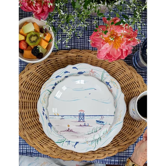 - Iconic scenes of seaside life are beautifully rendered in a calming palette of pastel hues on durable melamine.