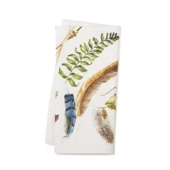 An artful display of woodland treasures, this napkin celebrates many colors and textures of nature.