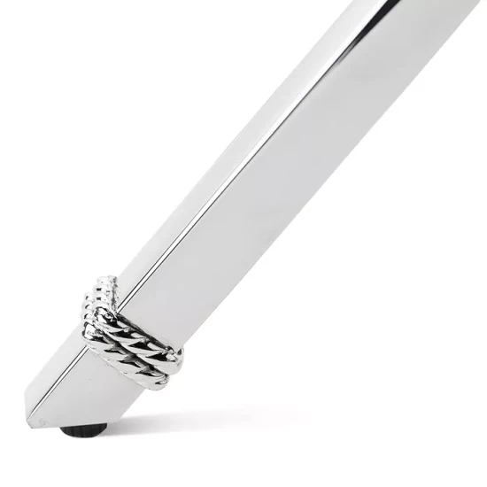 - Two-piece design handmade in a hammered metal with a polished finish