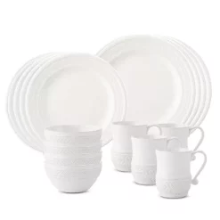 - Set includes four of each: dinner plates, dessert/salad plates, cereal/ice cream bowl and mugs