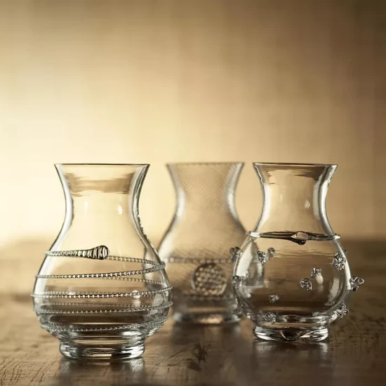 Juliska glassware is mouth-blown by artisans in the hills of Prague. The unique composition of Juliska glass allows it to be blown especially thin, making the glass an unexpected pleasure to drink from and to handle. Being handmade, no 2 pieces of Juliska are identical. Each will have its own individual character – small bubbles, slight color and size variations.