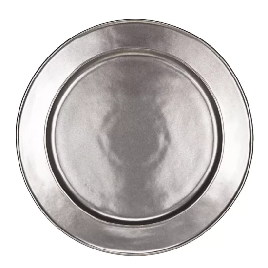 Juliska “Pewter” Stoneware has a rich, old-world luster that summons up visions of grand European estates. It beautifully showcases our unique “mottling” technique that gives each piece an original, hand-thumbed, hammered design. Layer it with all your Juliska stoneware, such as “Berry & Thread” or “Jardins Du Monde.”