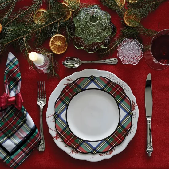 Replete with festive flair, the Juliska Stewart Tartan Dinnerware Collection elevates dining with a rich plaid motif trimmed in black. Mix and match pieces with your existing dinnerware to create a truly distinctive tablescape.