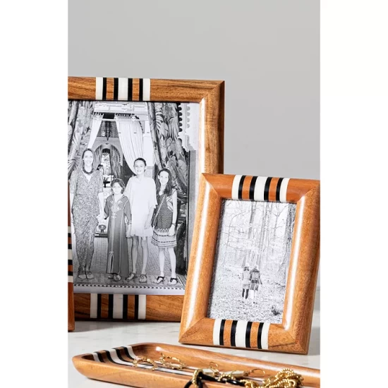 Richly grained wood, accented with chic black and white stripes of hand-applied resin, make the Juliska Stonewood Collection a striking choice for home decorating and entertaining.