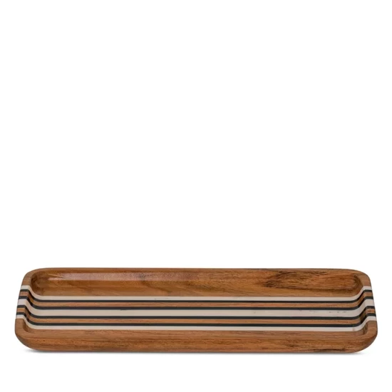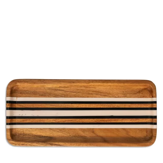 - Beautiful intersection of natural wood grain with linear stripes in black and white
